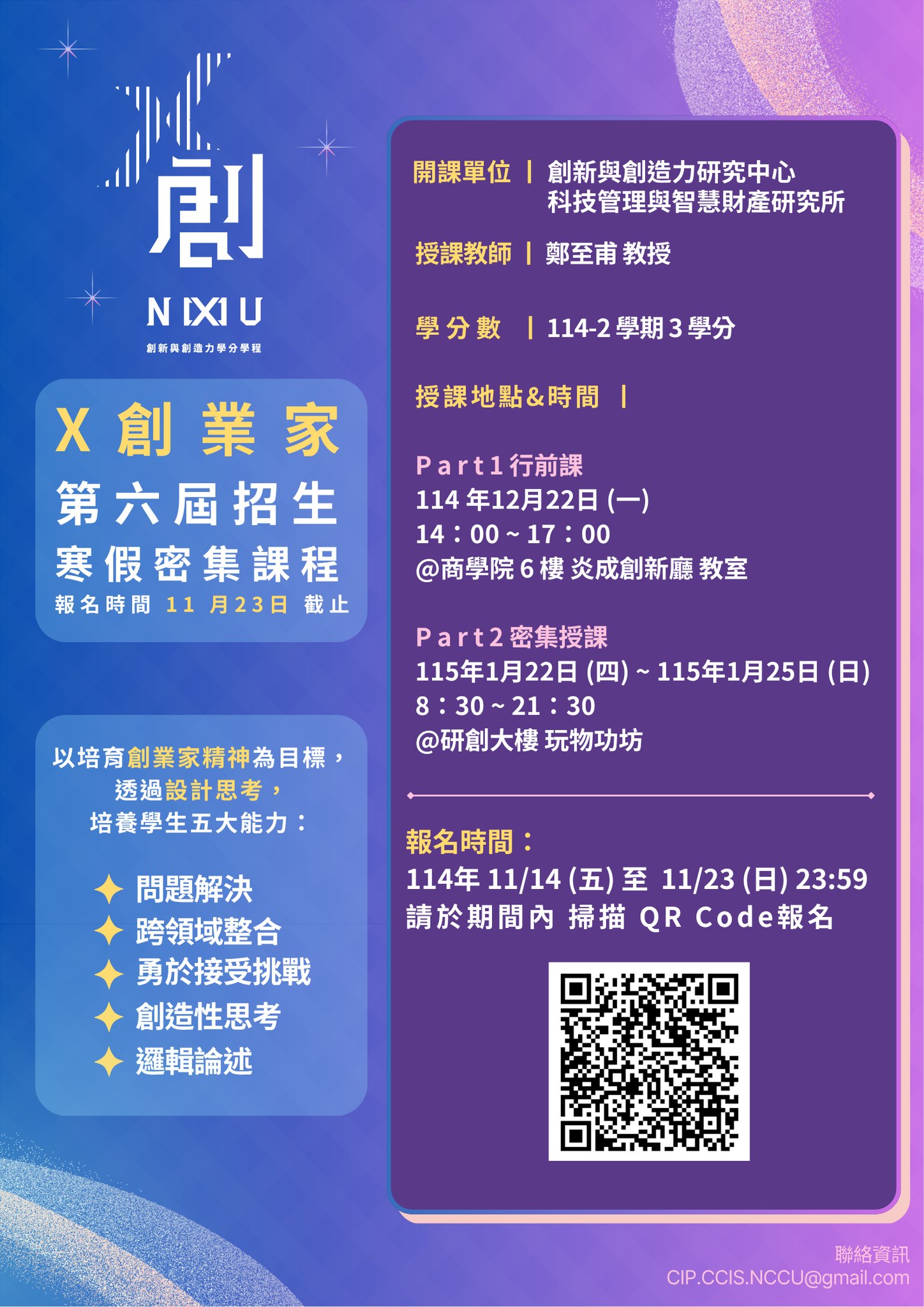 - 報名資格:政大及台聯大全體學生,學碩皆可報名